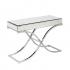 Illuminate your entryway or living room with this enchanting mirrored console table. An elegantly bowed metal x-frame forms an enticing shape with the multifaceted tabletop. Beveled mirrors and a reflective chrome finish accentuate the chic look. This captivating console table adds instant glamour to contemporary styled homes.