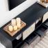 Yes you cane. Slide into midcentury modern pizzazz with the Simms Media Console. Wide scale open storage stacks up electronic accessories, board games, and your vintage record player. Natural cane doors glide back and forth for easy access to your entertaining fare, or screening of cable boxes and the like. Five small drawers tuck away decks of cards, remotes, or current reads. Storage and style - you do it all with this anywhere console rocking an eclectic retro look in the entry, dining room,or living space.