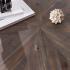 - Unique tabletop crafted from reclaimed wood features a geometric sunburst pattern