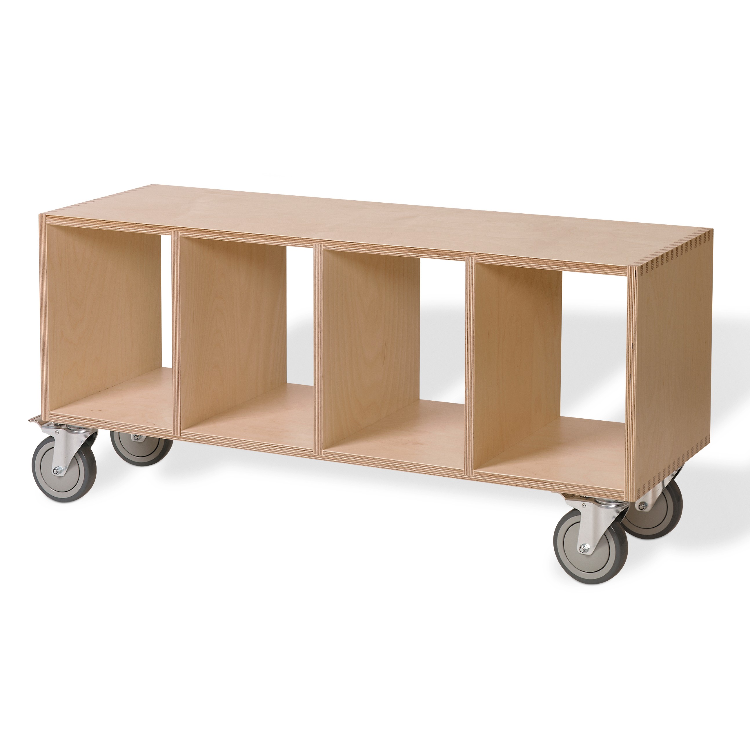 Birch veneer on full size 44" stackable bench box with gray locking casters