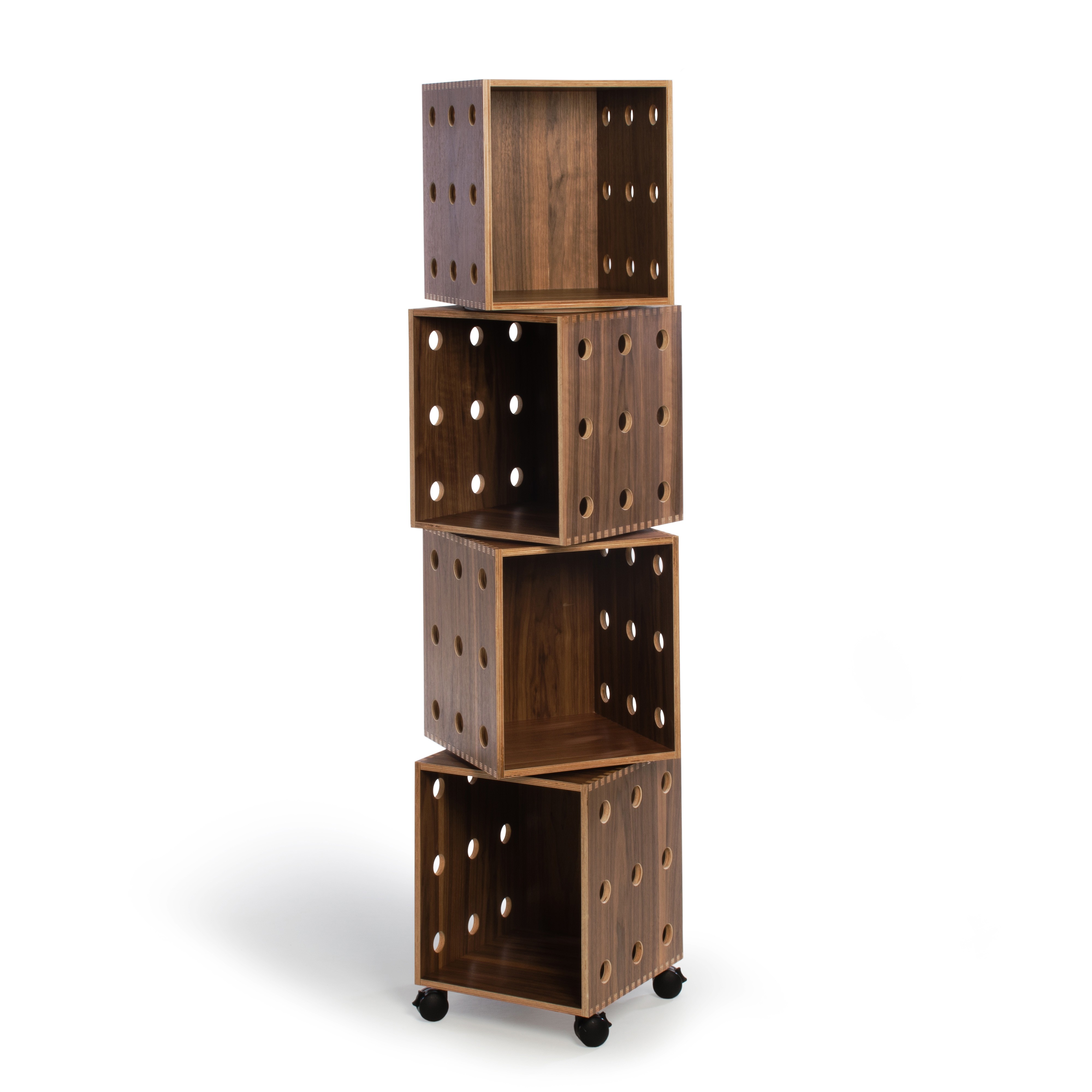 A flexible solution to your storage needs. These finely crafted boxes stack and rotate independently, free from hardware and held in place by gravity. The Perf Boxes are part of the permanent collection at the SFMoMA.
