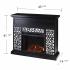 Add a touch of modern to your decor with this electric fireplace. A spacious mantel displays framed photos or a vase of flowers, while unique, lattice-inspired details highlight the mirrored surround. Perfect for warming your living room or dining area, this freestanding fireplace features flickering flames and embers that work with or without heat for enjoyment all year long. Give your home a cozy contemporary feel when you add this electric fireplace.
