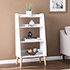 Max out your midcentury modern design with this wooden bookcase. Four shelves of varying sizes provide a home for books and notepads, while classic spindle legs leave a minimal footprint. Doubling as a home bar, your favorite spirits and bar accessories look elegant displayed on this white bookshelf. Upgrade with midcentury flair when you place this storage shelf in your home office or bar area.