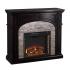 Ignite your senses with this updated lodge style electric fireplace. Rich ebony finish arches over the realistic gray faux stone surround. Clean, linear woodwork subtly catches the eye, drawing you into the composition. Bring the living room, dining room, every room to life with this rustically inspired, traditional electric fireplace. Energy efficient LED bulbs light the fire, a cost effective way to ignite bliss in any room without professional installation. User friendly remote control offers 4-way adjustability to customize the fireplace from the comfort of your sofa. Flames and logs each have 5-level adjustment, or off. An automatic shutoff and glass that remains cool to the touch ensure the fireplace warms safely. Turn off the heat to enjoy the fireplace ambience year round.